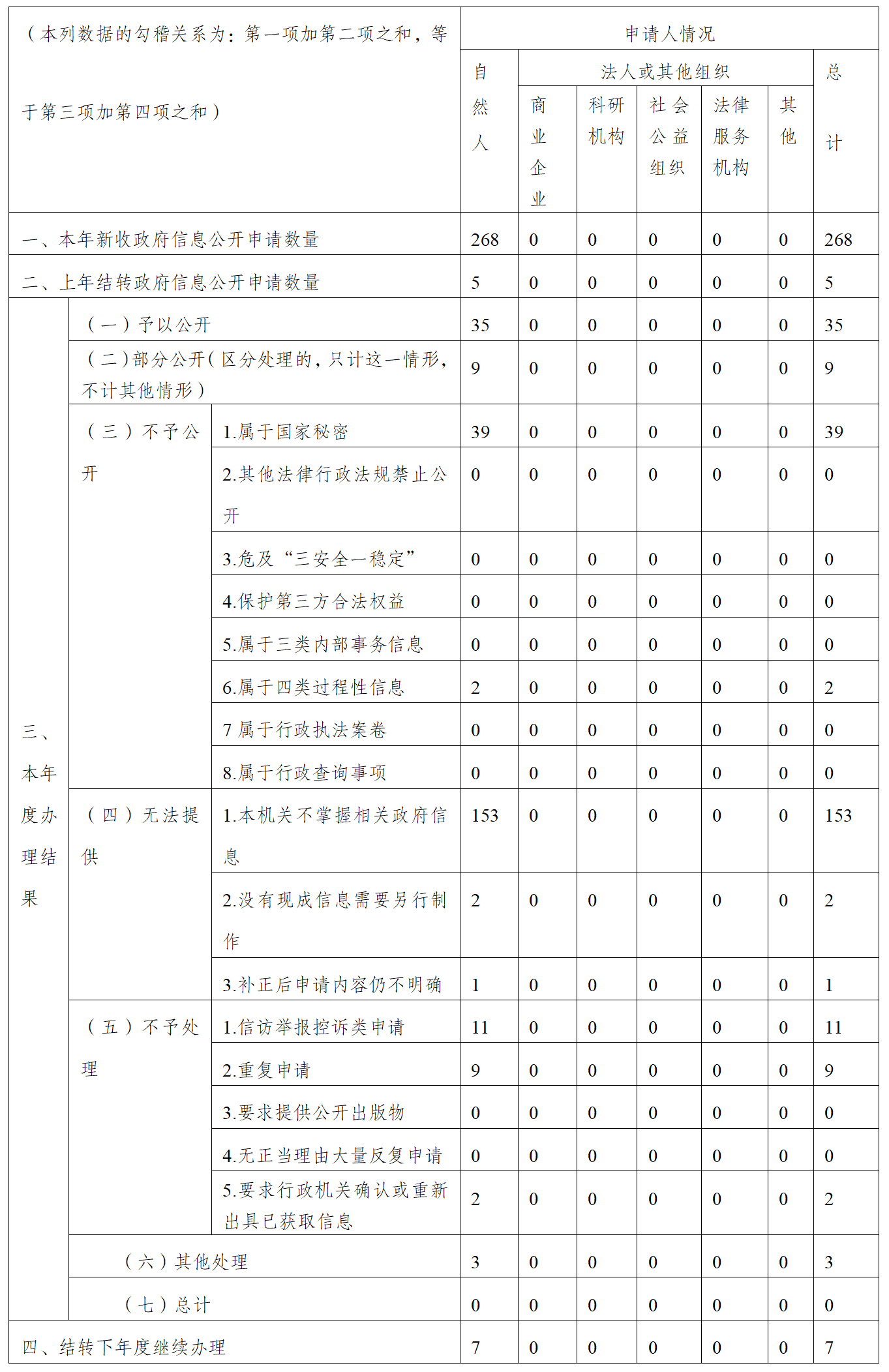 注:本年度新收131件申請(qǐng)(含268個(gè)申請(qǐng)事項(xiàng)),上年度結(jié)轉(zhuǎn)4件申請(qǐng)(含5個(gè)申請(qǐng)事項(xiàng))。鑒于對(duì)同件申請(qǐng)的各申請(qǐng)事項(xiàng)可能存在不同答復(fù)情形,本表格在統(tǒng)計(jì)時(shí)按照申請(qǐng)事項(xiàng)計(jì)數(shù)。